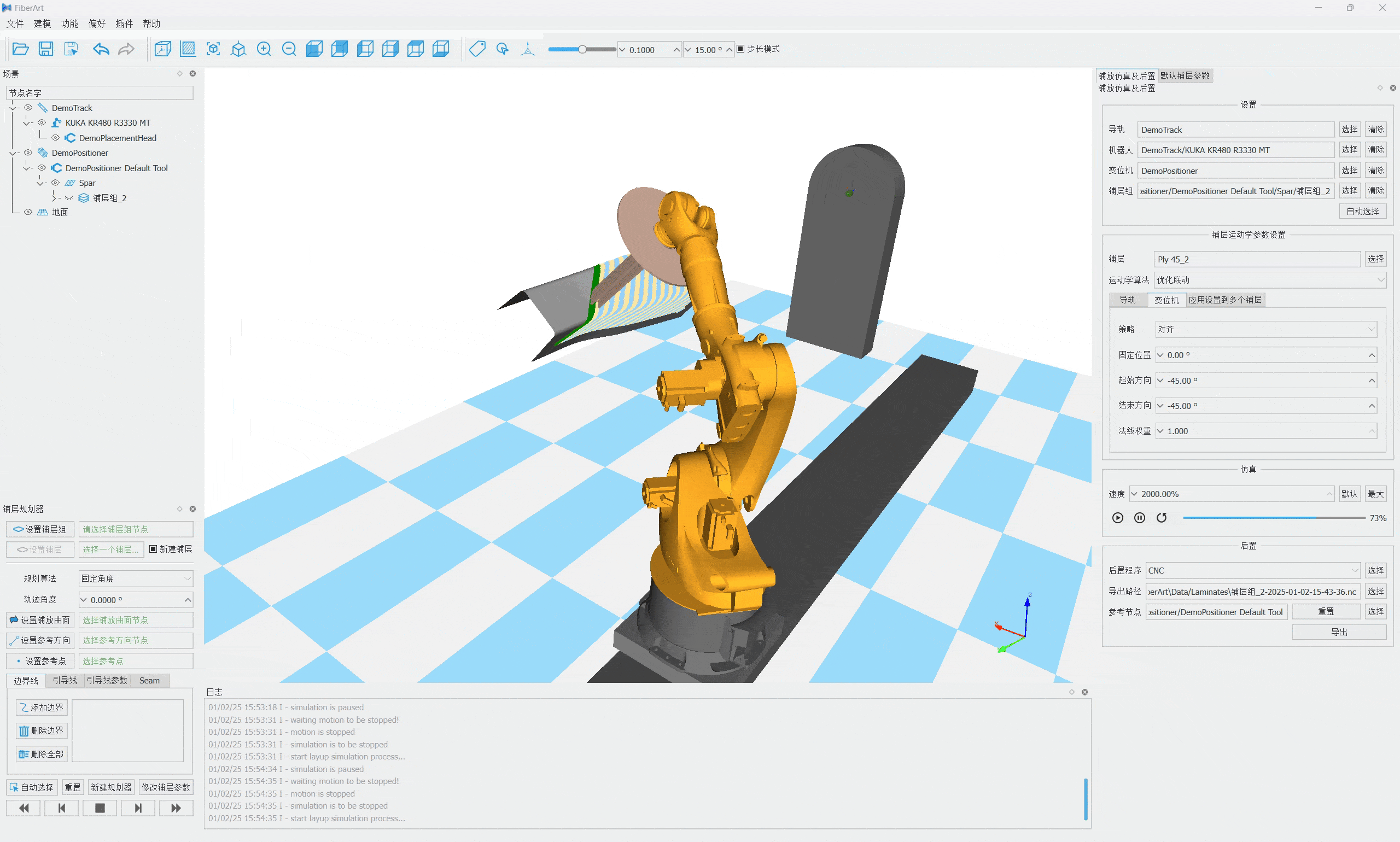 FiberArt 是国产自主开发的用于自动铺丝机(AFP, Automated Fiber Placement)的轨迹规划及仿真软件,操作简单,功能完整,性能卓越!